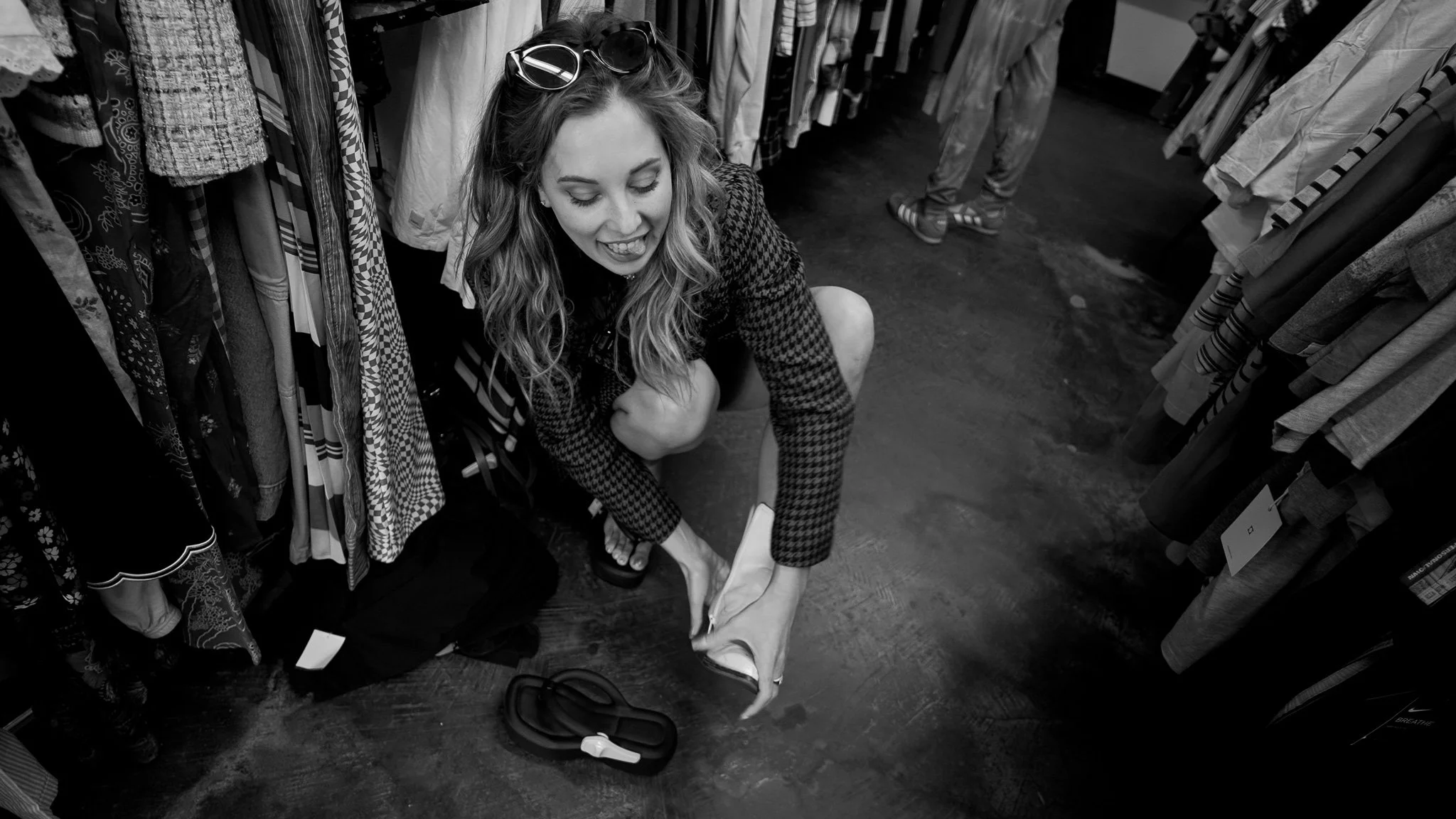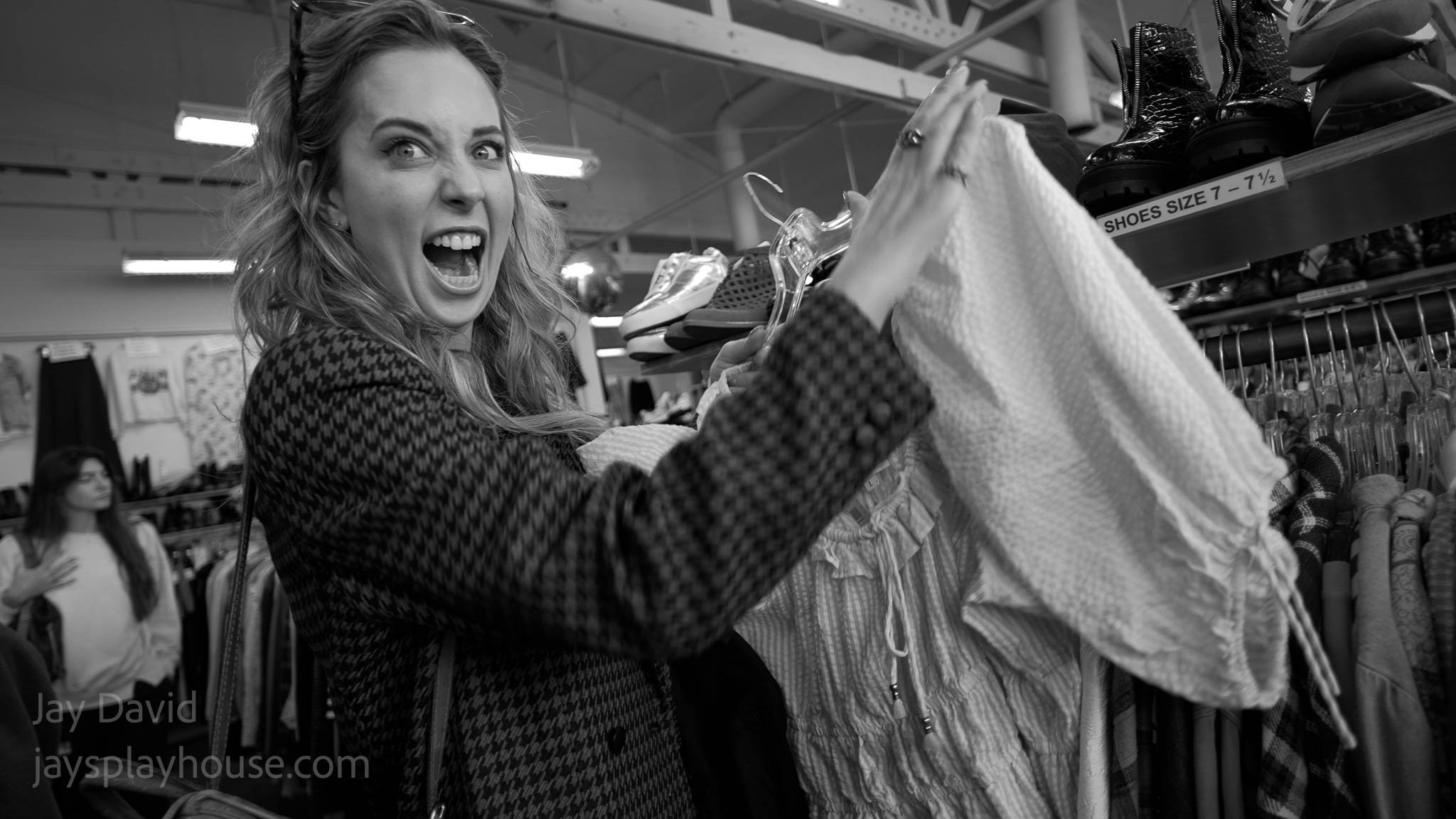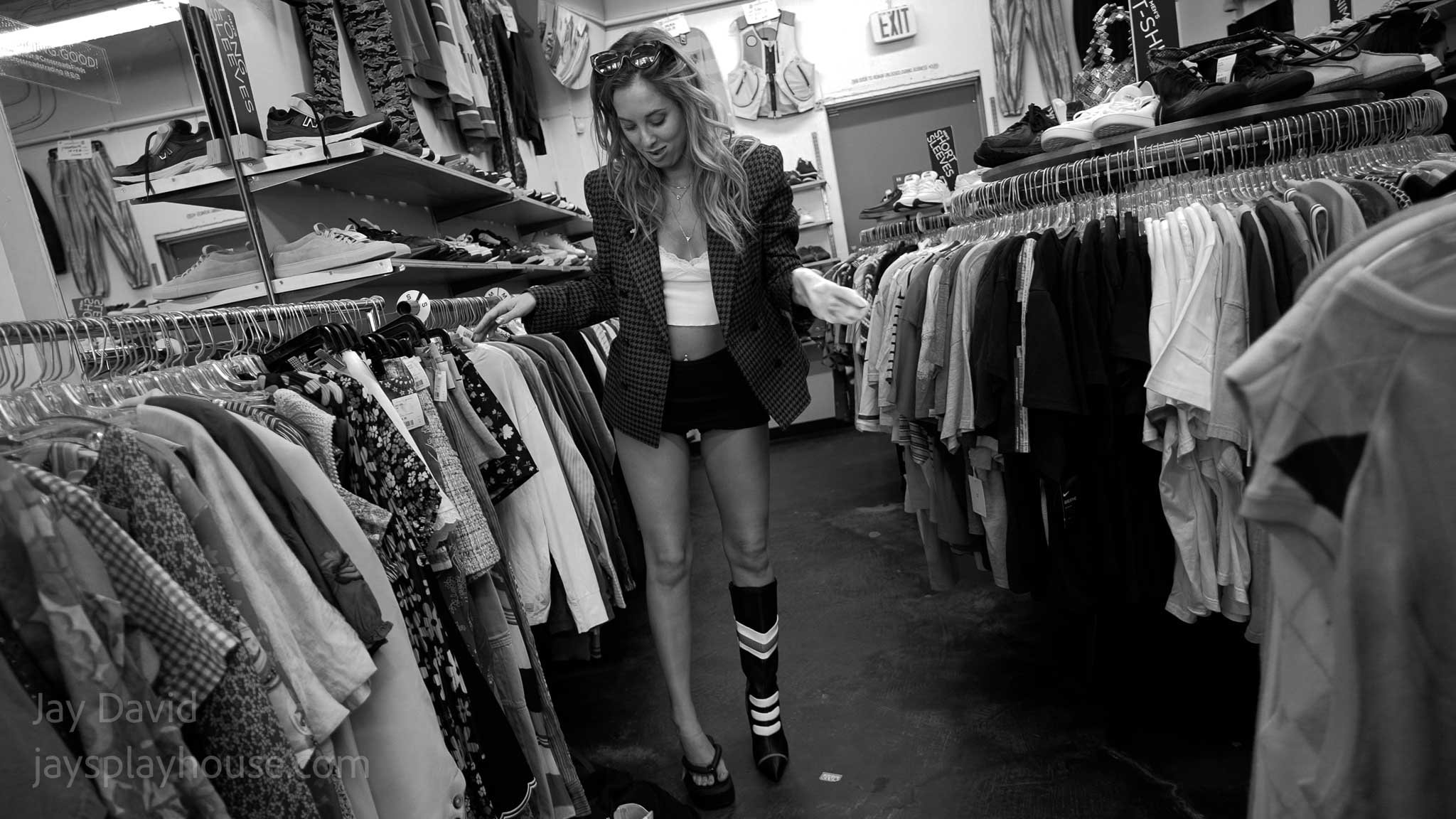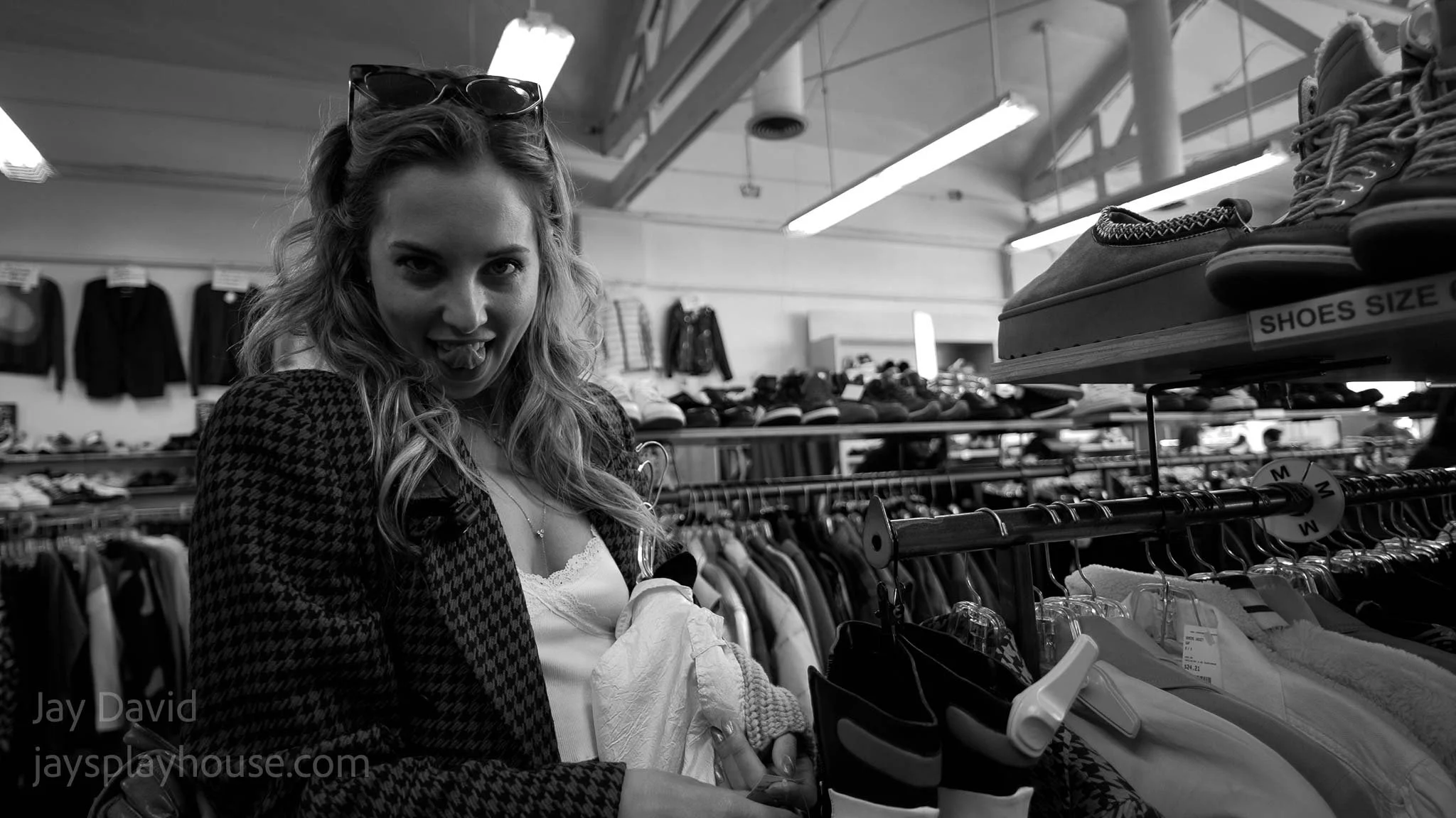 Spending a day thrifting with Millie Morgan quickly turns into something way bigger than just digging through racks. What starts as a casual run through Los Angeles thrift stores becomes a full-on exploration of style, personality, and the mindset behind what makes an outfit “work.” Millie moves through each section with intention—breaking down how she shops for both everyday looks and on-set wardrobe, constantly balancing between “slutty clothes” and what she jokingly calls her evolving “milf attire.” It’s not just about finding pieces, it’s about understanding how they fit her brand, her body, and the kind of energy she wants to bring to a shoot.